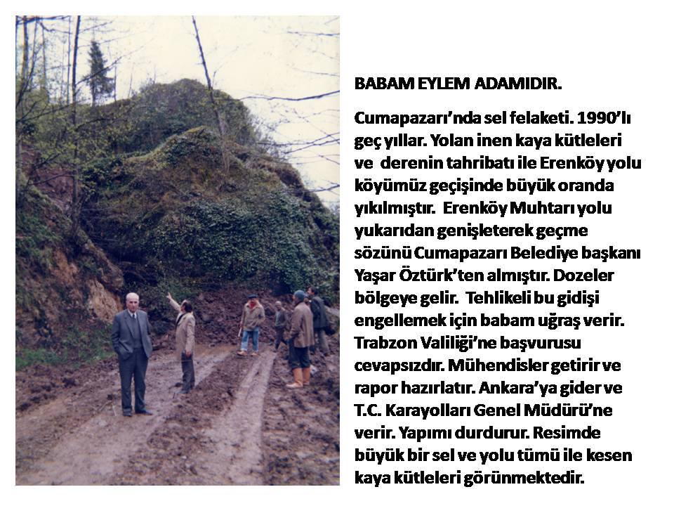 Trabzon Arafil Boyu gecekondumsu mahallesinde ev yaptırıyoruz. Ustalar ve çıraklar çalıştırıyoruz. Babam ustaya (patrona) anlaştıkları parayı vermeden önce tüm çırak, yardımcı v.b. gibi kişileri toplar aldıkları parayı sorar ve patronunu (ustanın) gözü önünde onlara dağıtır, anlaştıkları paranın üstünü ustaya verirdi.