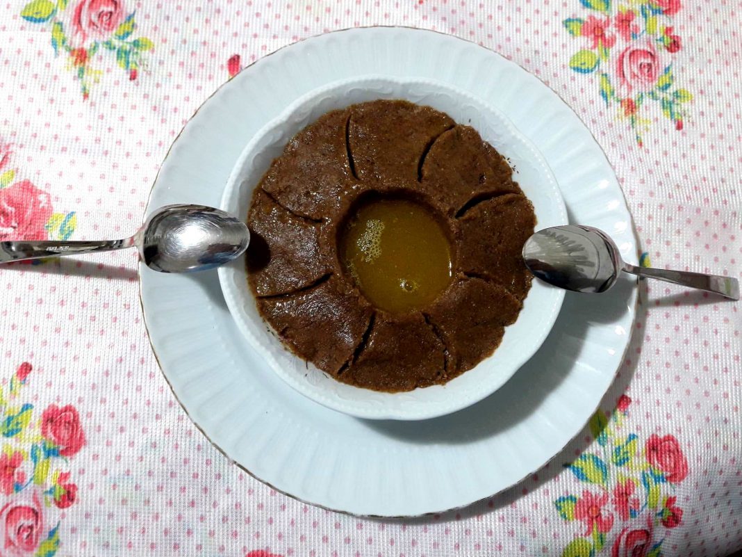 Katı bir karışım elde edilir.Karışımın ortası şerbete bandırılan odun kaşıkla açılır. 2 Yemek kaşığı tereyağı eritilir. Üzerine 3 bardak su  ve şeker eklenerek kaynatılır. Sıcak şerbet  kavutun ortasına dökülür. Sıcak servis yapılır. Afiyet olsun.